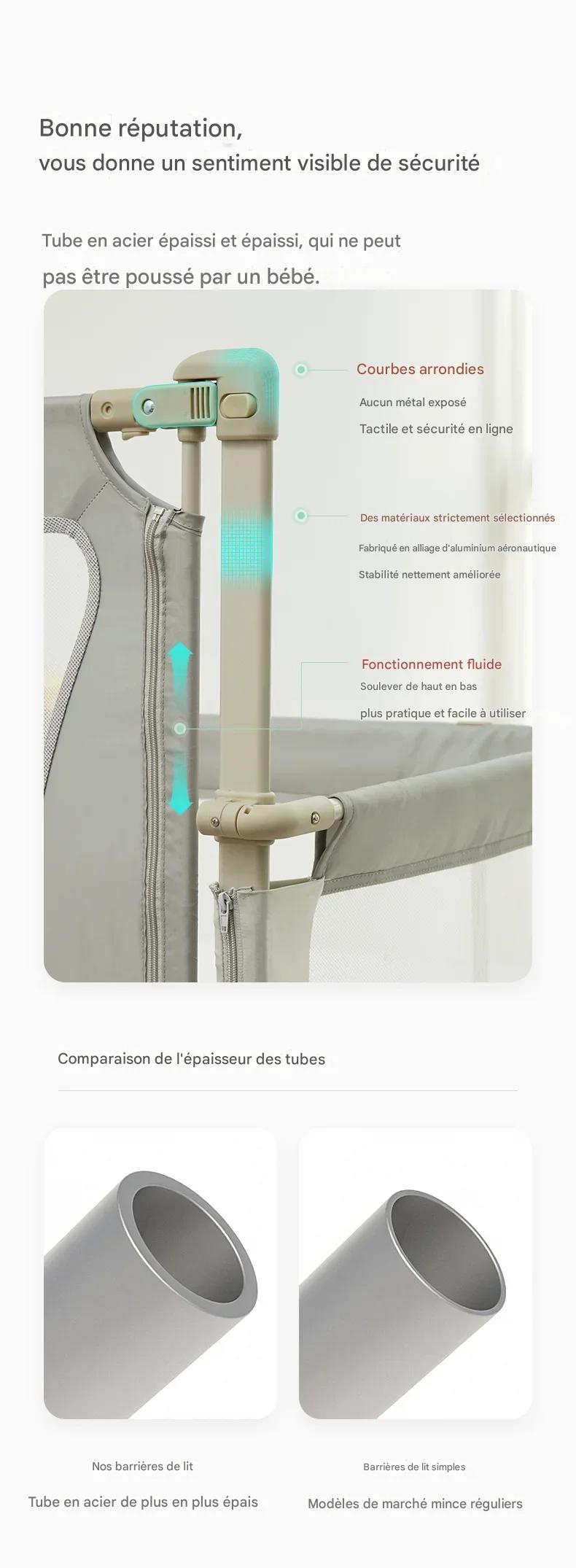 Clôture de couchage améliorée pour bébé, lit barrière 3 en 1